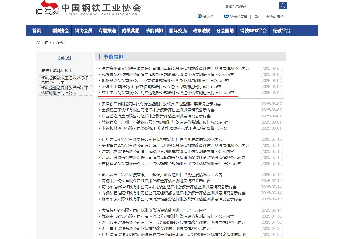 2025年8月2日,中國鋼鐵工業(yè)協(xié)會對鞍山寶得鋼鐵有限公司超低排放清潔運輸改造和評估監(jiān)測情況進行了公示,寶得鋼鐵有限公司成為鞍山市除鞍鋼外首個完成超低排放清潔運輸改造和評估監(jiān)測工作的企業(yè),標志著公司超低排放改造項目取得重要階段性成果。不僅為企業(yè)可持續(xù)發(fā)展奠定了堅實基礎(chǔ),也為鞍山地區(qū)的環(huán)境保護作出了積極貢獻,是企業(yè)履行社會責任的生動實踐。